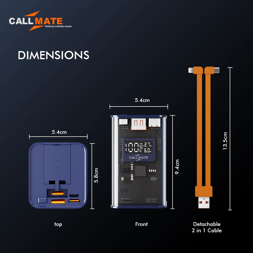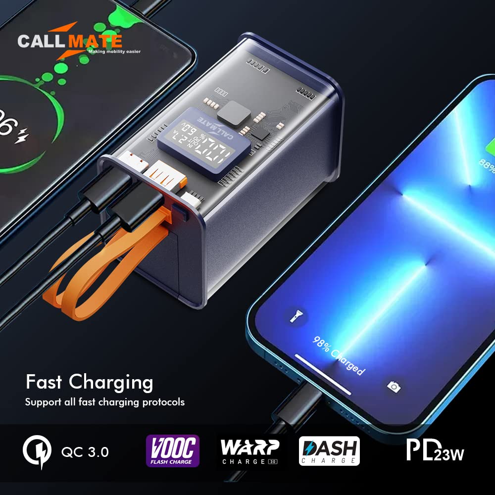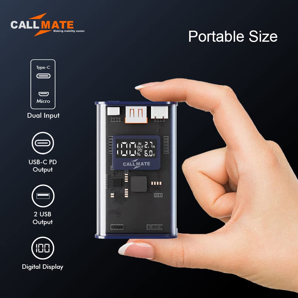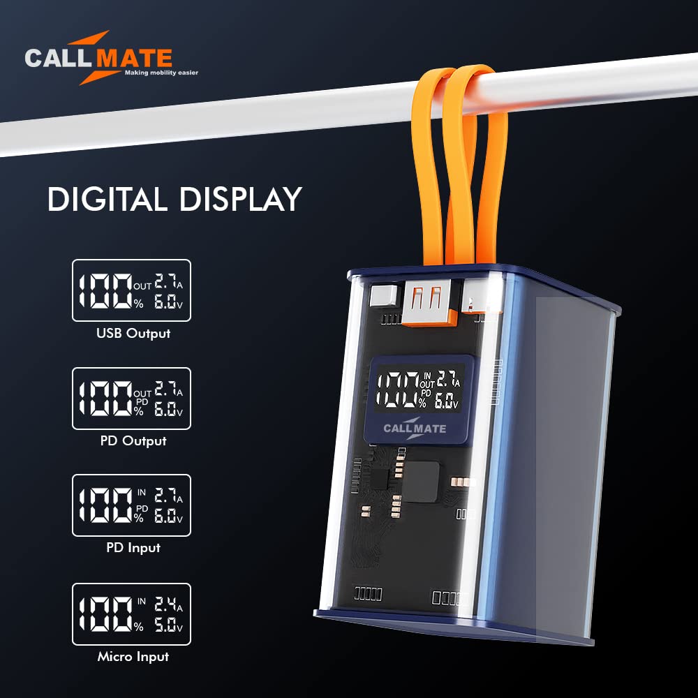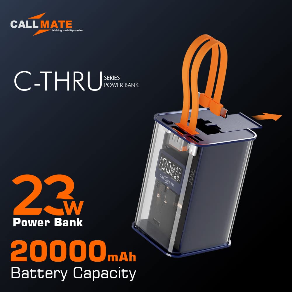 Callmate C-Thru 20000mAh Transparent Power Bank, 23W Fast Charging with Type C PD (Input & Output | 2 Output Ports and 2 Input | Digital Display (23 W, Power Delivery) (Transparent, Grey, Lithium Ion)